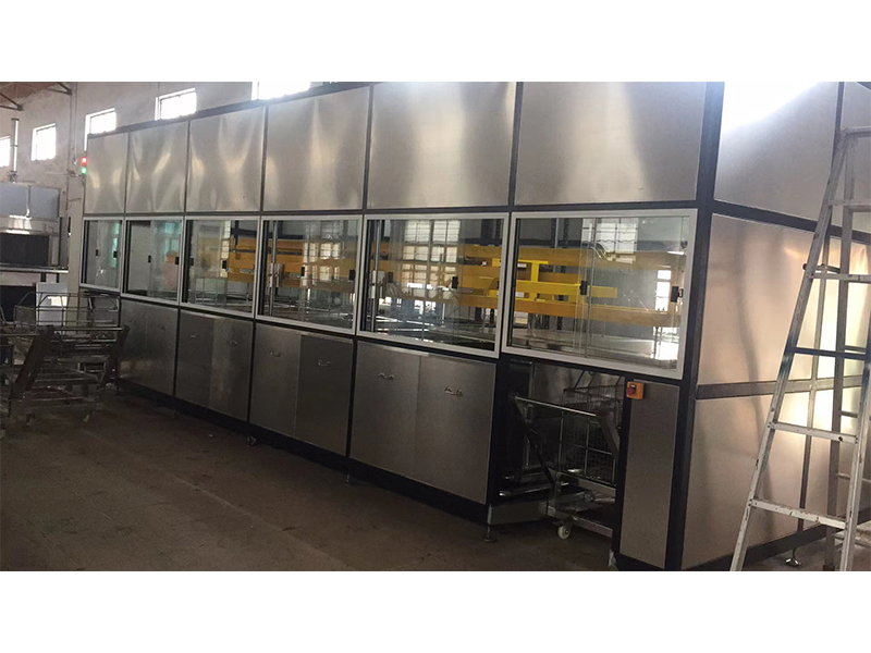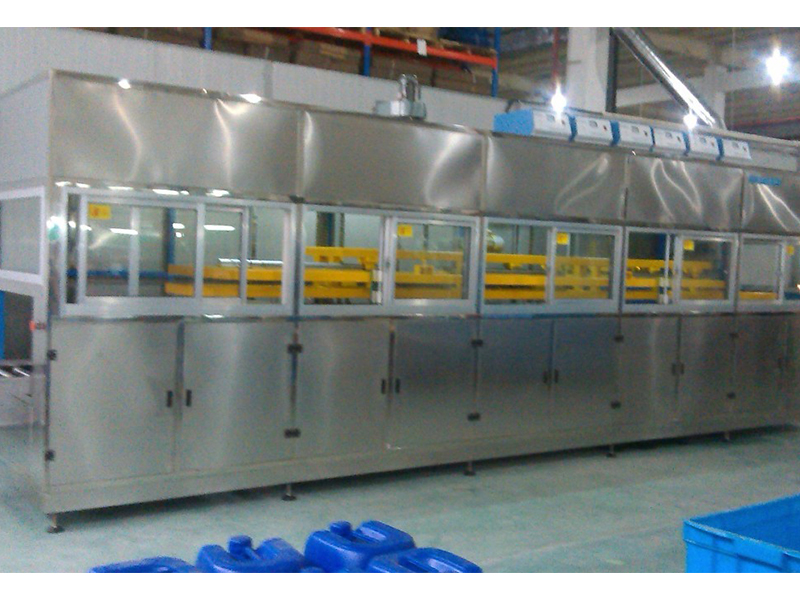 按照客户工件清洗要求设计制造,采用多臂式组合机械手操作,多臂输送,将所有的清洗篮一起输送到下一个工位,根据程序设定自动完成清洗工作,提高生产效率。多与过滤、鼓泡、旋转、干燥等工序组合而成。(自动上料——超声波粗洗—超声波精洗—热水漂洗—热水漂洗—热风干燥——热风干燥—一自动下料)