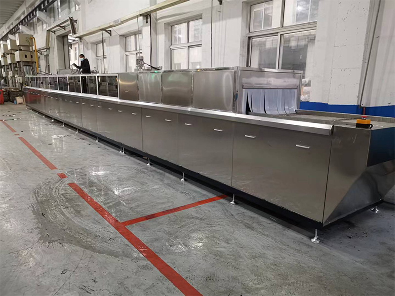 按照客户工件清洗要求设计制造,由电机带动履带传动逐个工位进行清洗,多与喷淋、鼓泡、切风、干燥、防锈组合而成。全自动生产,清洗效率高,清洗质量一致,适应大批量生产。(自动上料——喷淋粗洗一超声波精洗一一喷淋漂洗—喷淋漂洗—切风—切风—热风干燥—防锈—自动下料)